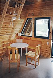 Haus ist ganz aus Holz gebaut und innen mit unbehandeltem Holz